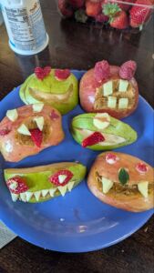 Fruit Face Frankensteins can be made in endless combinations, as long as you have these three categories of foods: